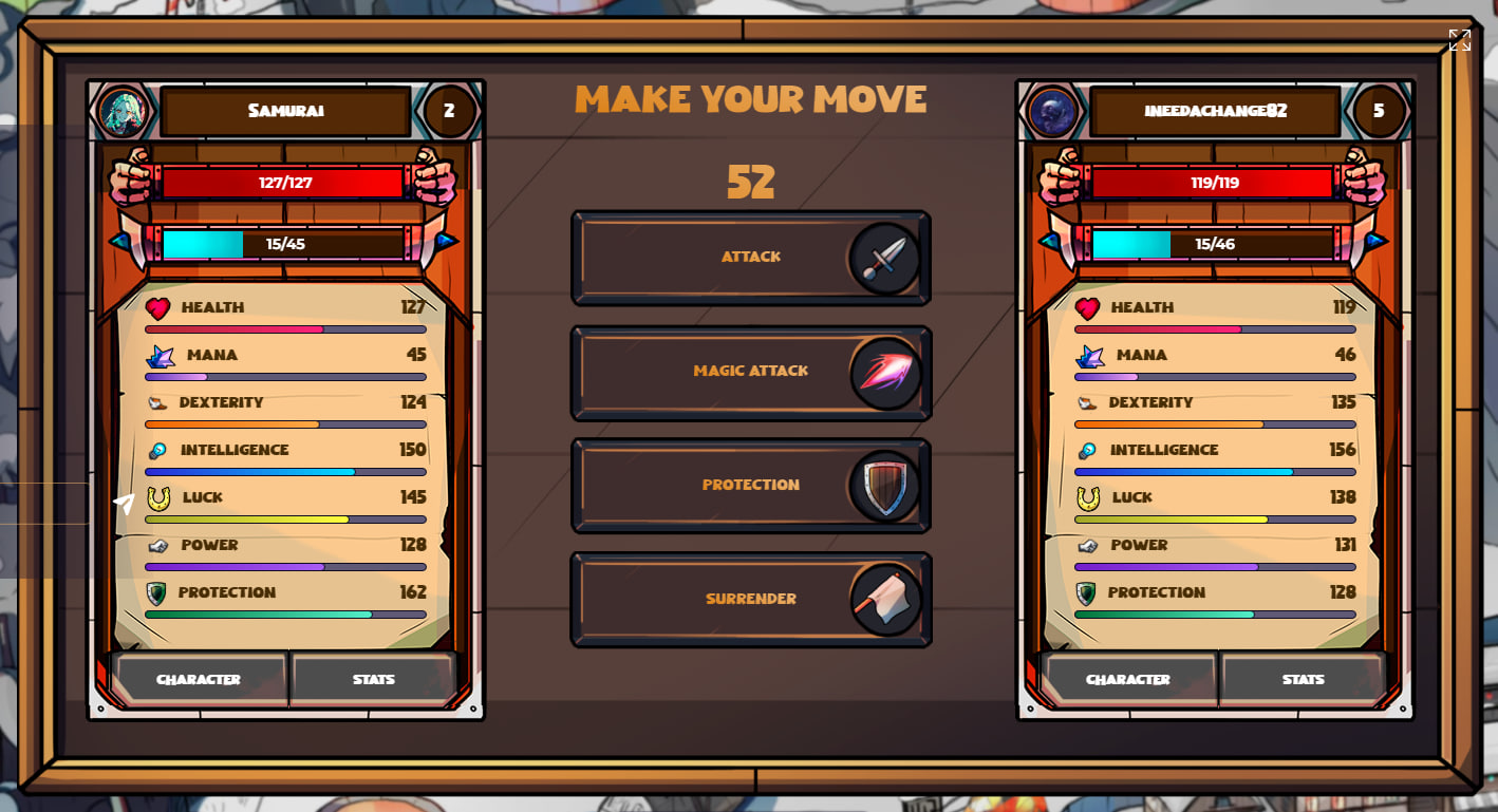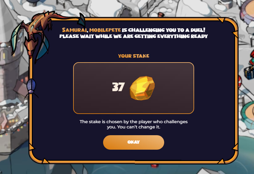 Alles beginnt damit, dass zwei Spieler auf demselben Feld stehen. Sie können einfach würfeln, in der Hoffnung, zu einem anderen Spieler zu gelangen oder ihm auszuweichen, oder einen magischen Würfel verwenden und eine 100-prozentige Chance haben, in ein Duell zu geraten oder ihm auszuweichen.