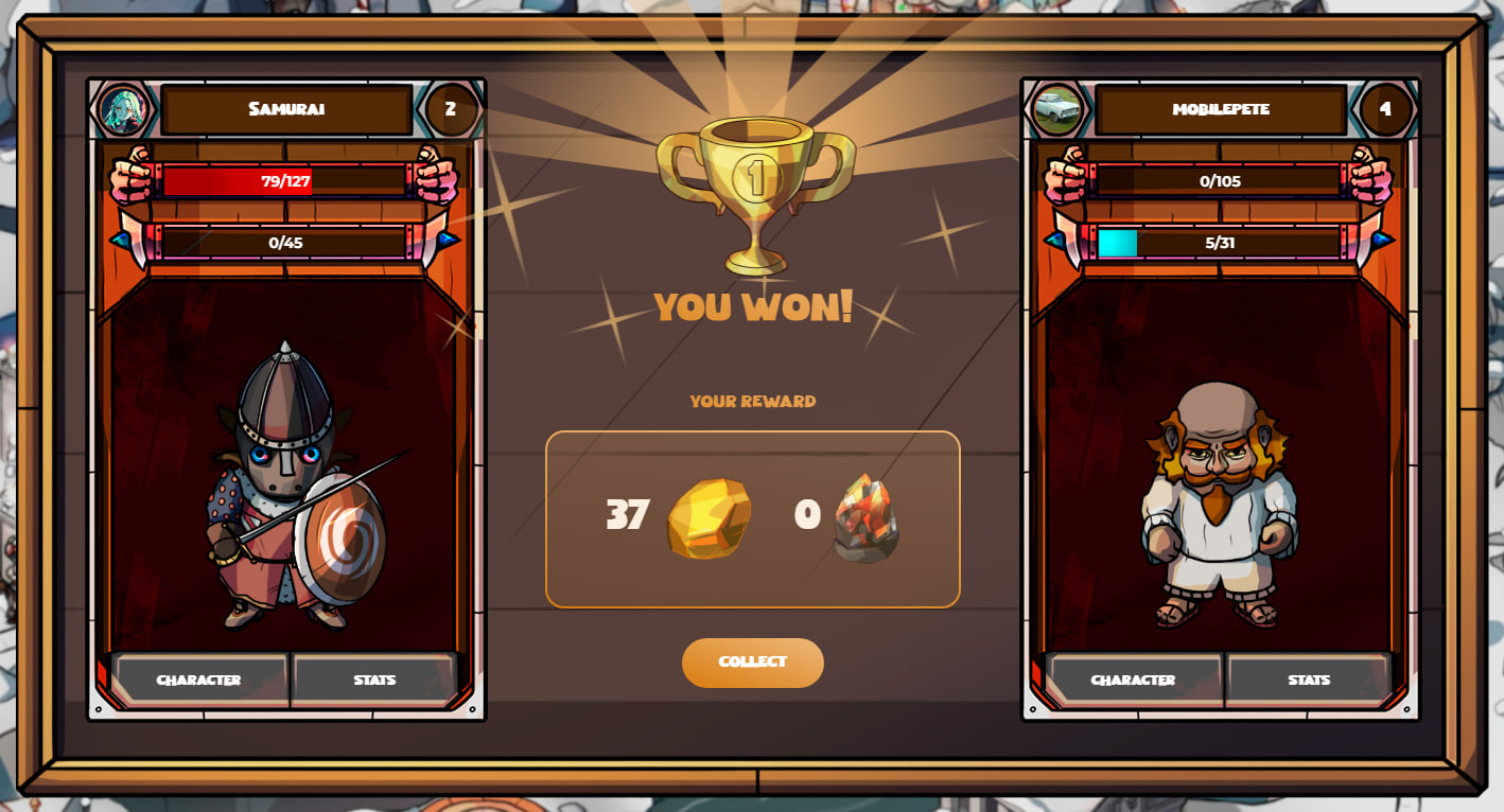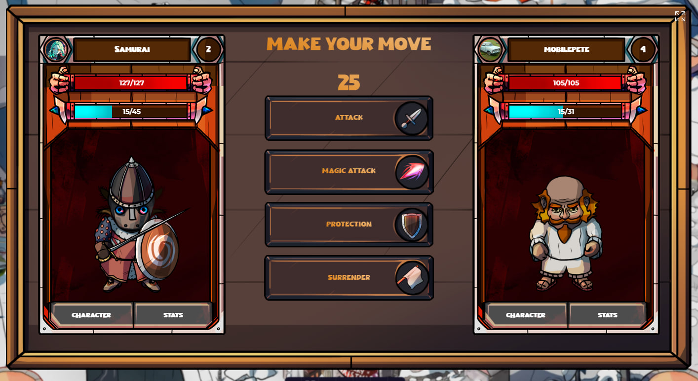 Derjenige, dessen Gesundheit zuerst erschöpft ist, verliert. Denken Sie jedoch daran, dass der Angreifer zuerst zuschlägt. Wenn Sie also beide wenig Gesundheit haben und Sie beide in der letzten Runde einen normalen oder magischen Angriff gewählt haben und keiner verfehlt hat, dann ist derjenige derjenige, der zuerst angreift (d. h. derjenige, der begonnen hat). das Duell).