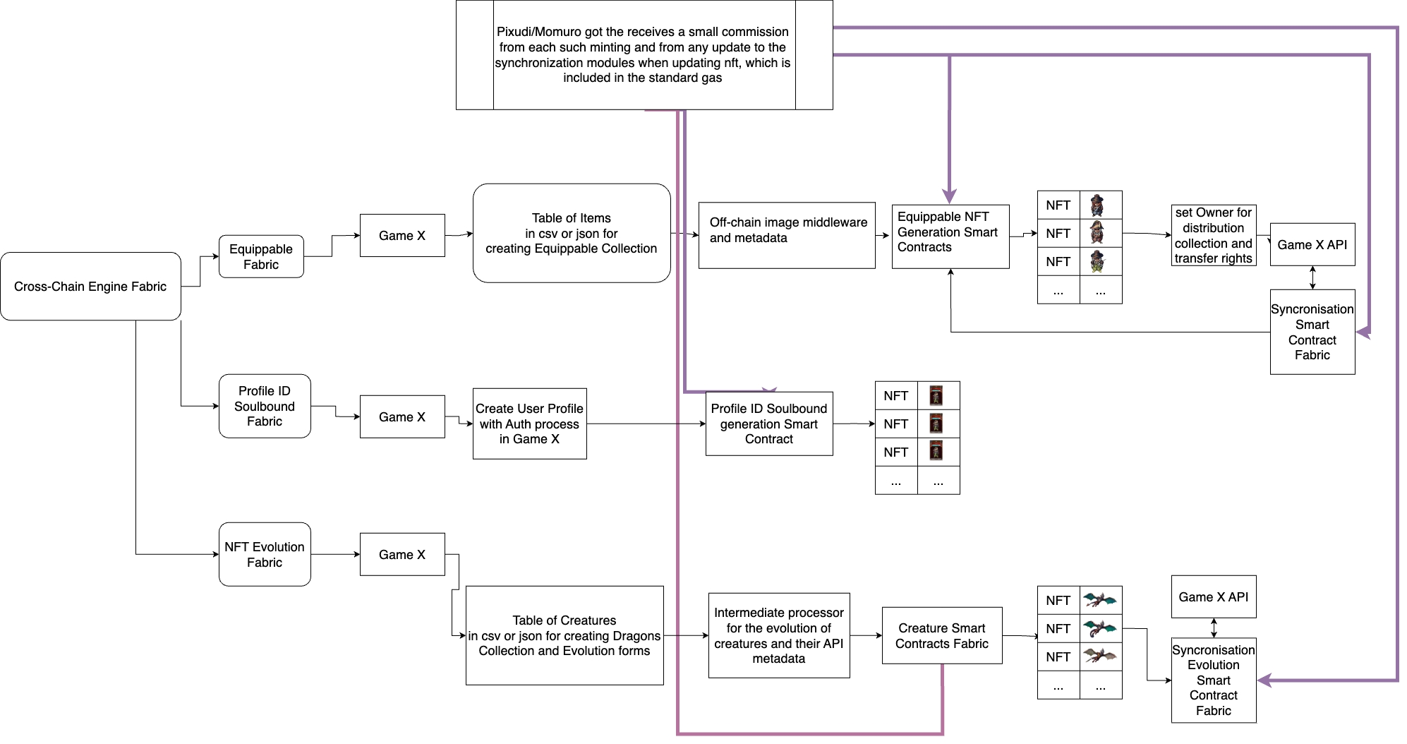 Pixudi ブロックチェーン エンジンは Momuro です。 Momuro は、Unreal または Unity ゲーム エンジンと同じエンジンです。 このエンジンは、ゲームのオンチェーン操作を提供する一連のメソッドとスマート コントラクトです。