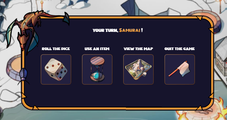 その後、プレイヤーは順番に行動します。 自分の順番中、誰もがサイコロを振る前にインベントリにあるアイテムを使用できます。 これは次のようになります。