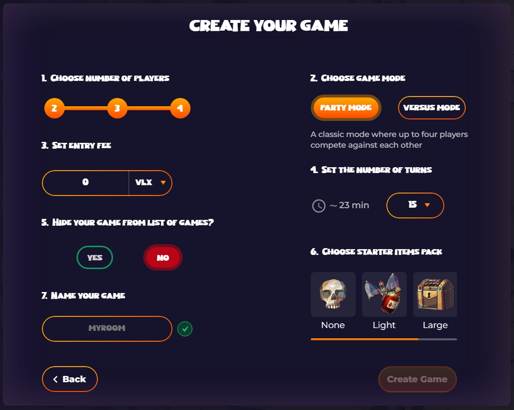 Kullanıcılar bir oyun oluştururken farklı tercihler belirleyebilir: